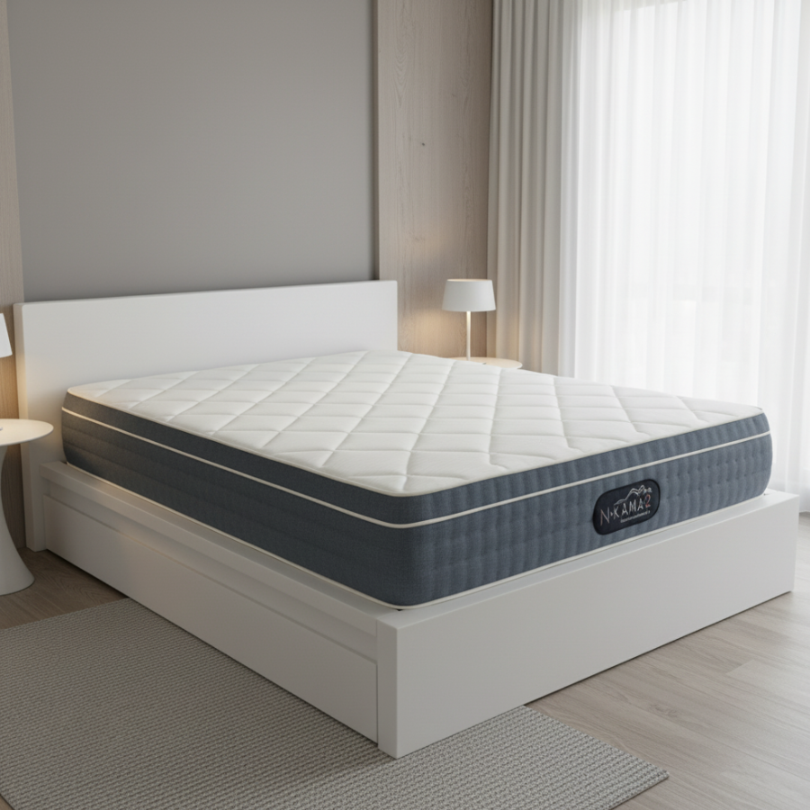 En el núcleo, el sistema de muelles ensacados proporciona un soporte anatómico y silencioso, permitiendo libertad de movimiento sin perder la sensación de confort suave. Gracias a su diseño simétrico, la parte inferior replica las mismas capas de confort, ofreciendo durabilidad y versatilidad para uso por ambas caras.