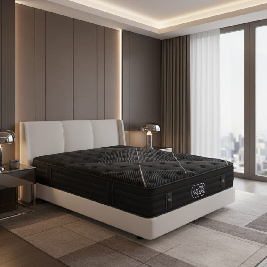 El colchón Nimbo BOX pertenece a una categoría premium, diseñado para quienes no solo buscan dormir, sino experimentar un descanso reparador, fresco y envolvente cada noche. Su estructura avanzada combina espumas ergonómicas de alta densidad, una capa de viscoelástica Airy Plus de última generación, y un núcleo de muelles ensacados independientes con 7 zonas de confort, que se adaptan con precisión a las distintas partes del cuerpo, ofreciendo un soporte personalizado desde la cabeza hasta los pies.